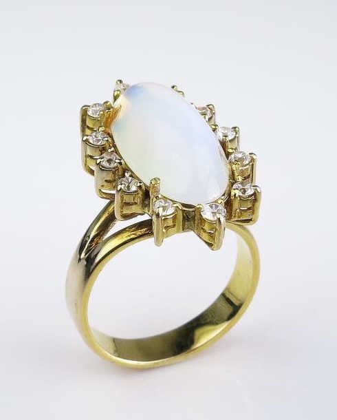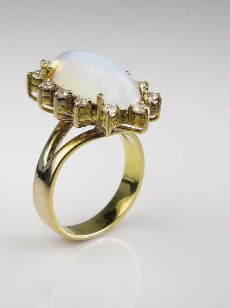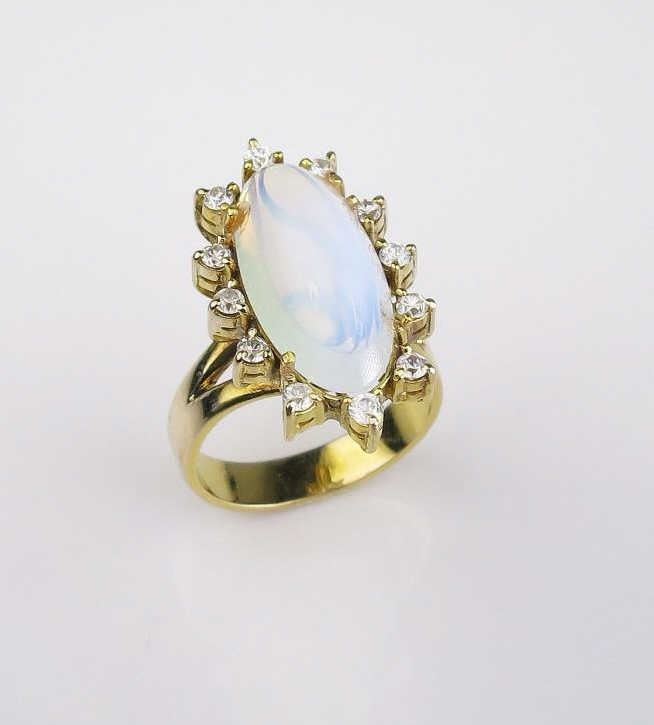 Lot 629 Alluring Oval Moonstone and White Sapphire Ring featuring 15 round cut sapphires weighing approx.