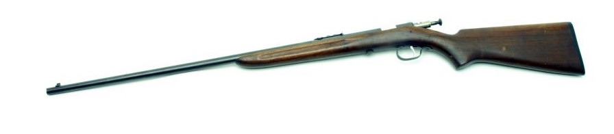 Winchester Model 60A bolt action rifle, .22 short, long and LR caliber, 27” round barrel, no visible S/N, in overall very good condition displaying the majority of its original finish, very good bore, crisp action, very good markings and woodstock. (C&R). Est.: $100-$200.