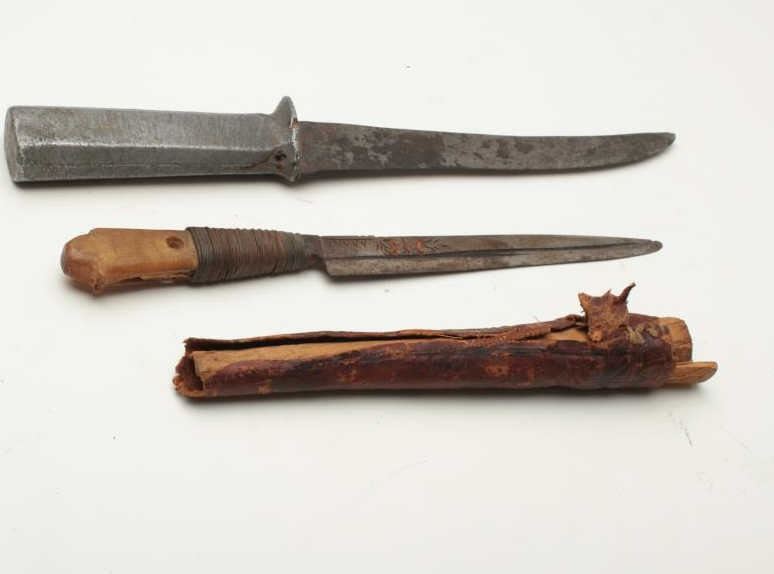 Lot 640 Lot of two WW II era misc. “in theater” knives, one with an aluminum grip off a Japanese Zero airp