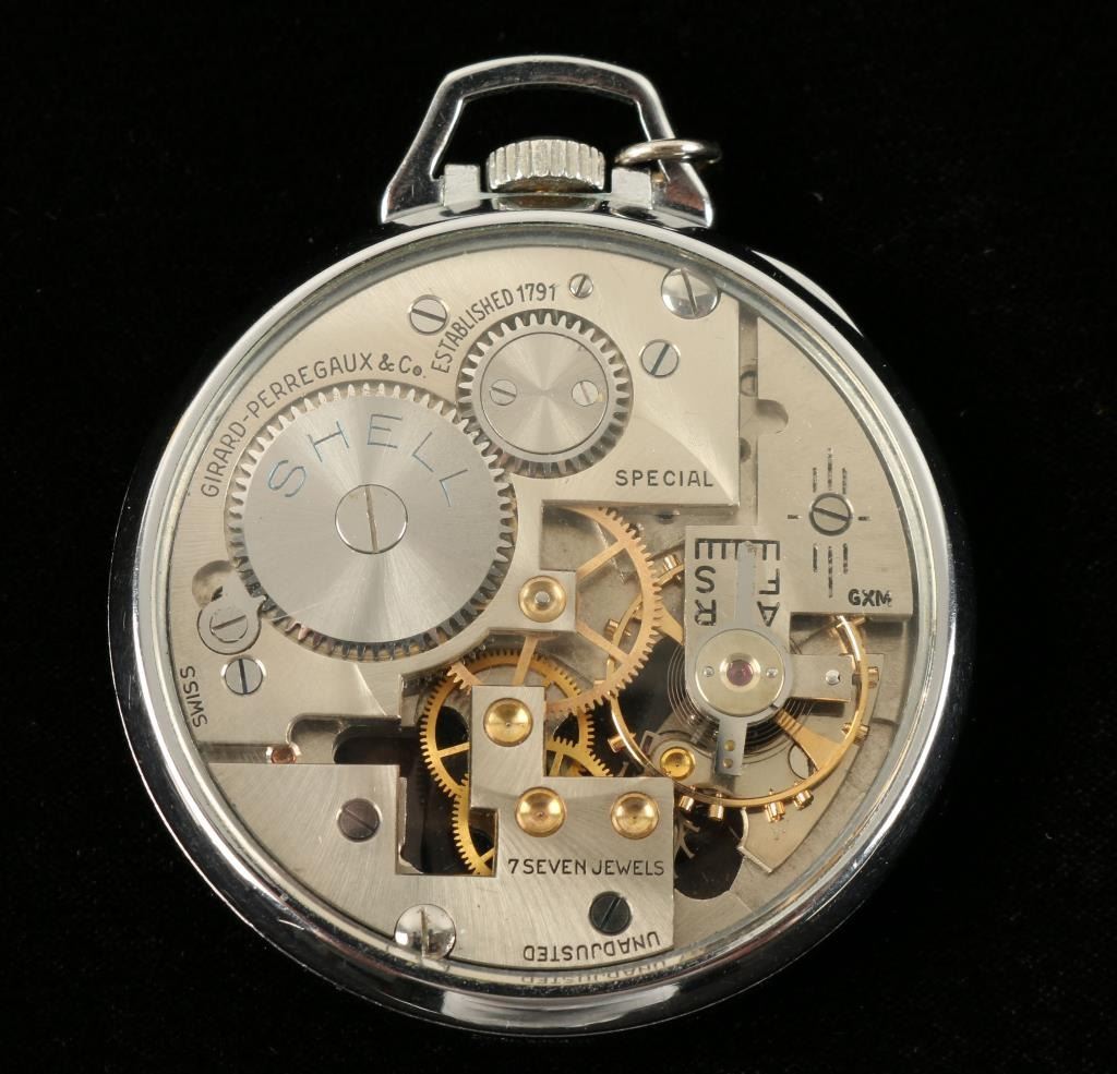 Girard-Perregaux & Co. stainless steel skeleton watch, approximately 1.75” in diameter in overall fine appearing condition and running at time of description. Est.: $1,000-$2,000.