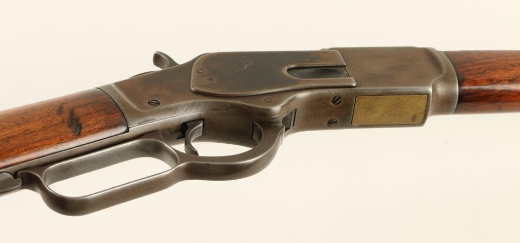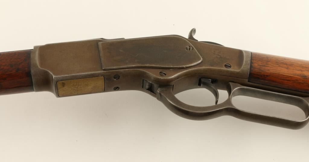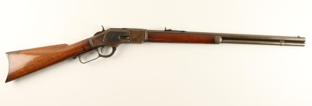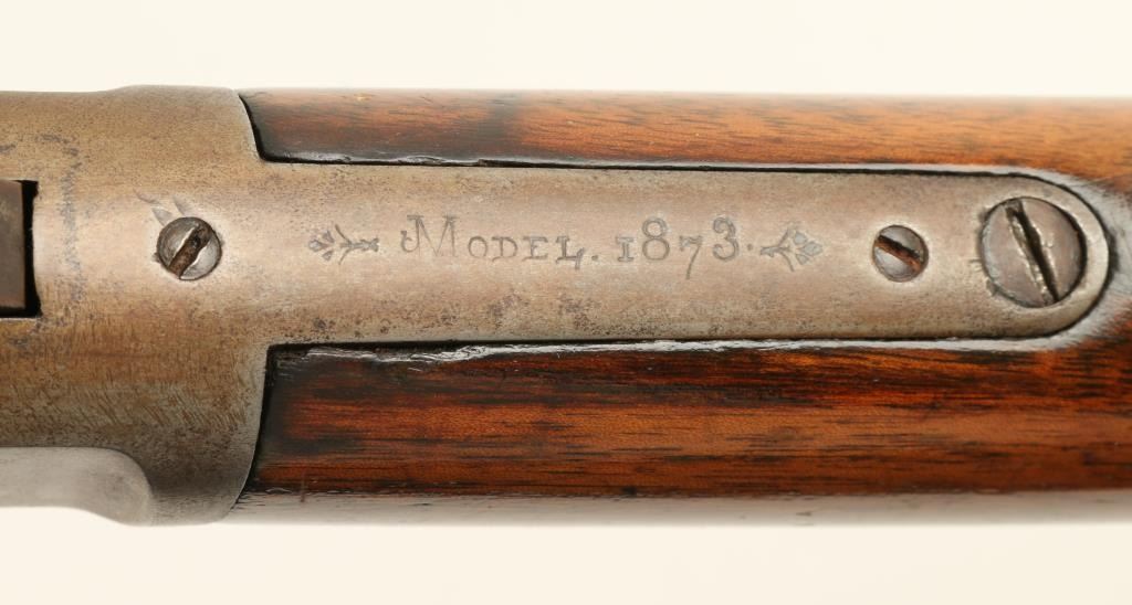 Winchester Model 1973 lever action rifle, .38 caliber, 24” octagon barrel, S/N 270844B in overall good condition showing a brown patina with some areas of blue on the receiver; good action and markings; good bore; overall good wood showing an old re-finish. (Antique). Est.: $800-$1,600.