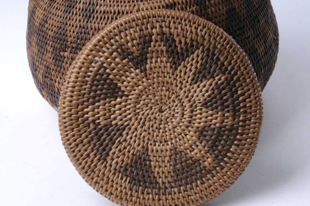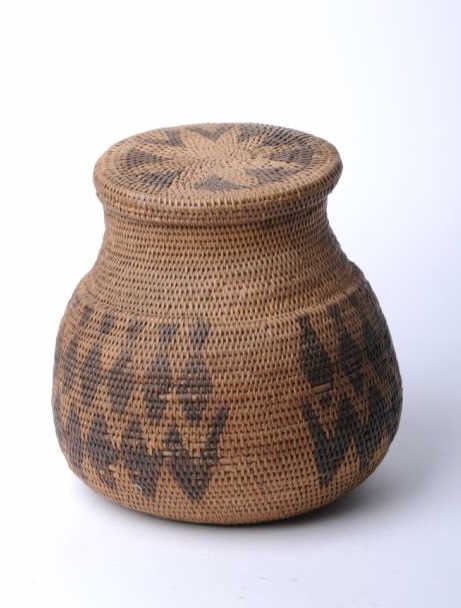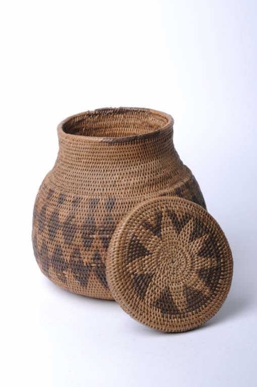 Lot 842 Exceptional woven Indian basket with lid approximately 9” in height; very good condition, ca. 1900