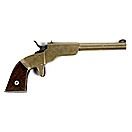 Percussion Pistol .190 bore diameter, 5" octagonal to round barrel length, NSN, no visible markings. Brass frame and barrel with walnut grips. Brass has a dark mustard patina. The grips have nicks and dings consistent with use. Bore is dark anddirty. Mechanically good. Est:$200-400