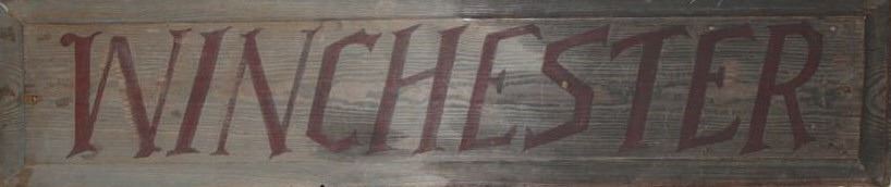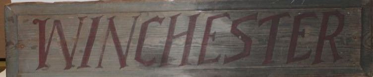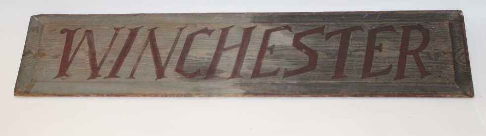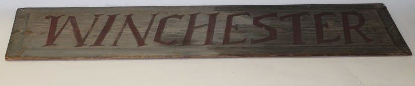 Lot 855 Old “WINCHESTER” painted wood advertising sign, approximately 9.5” x 41.5” in overall good condit