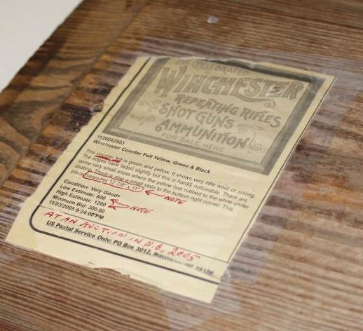 Old “WINCHESTER” painted wood advertising sign, approximately 9.5” x 41.5” in overall good condition; great for the Winchester collector’s gunroom or den. Est.: $300-$500.