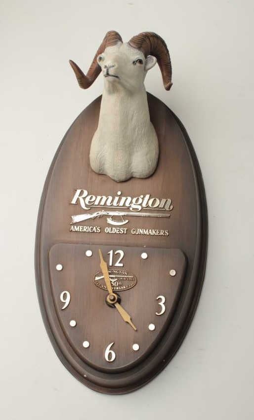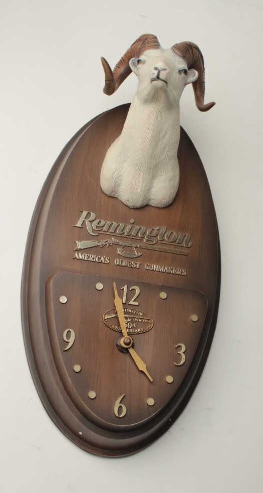 150th Anniversary (1966) Remington Wall Clock with big horn sheep effigy and logo of Remington; near fine condition. Est.: $175-$350.