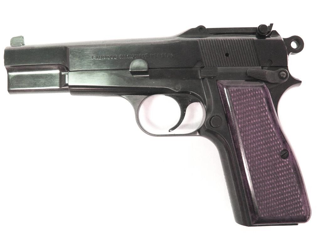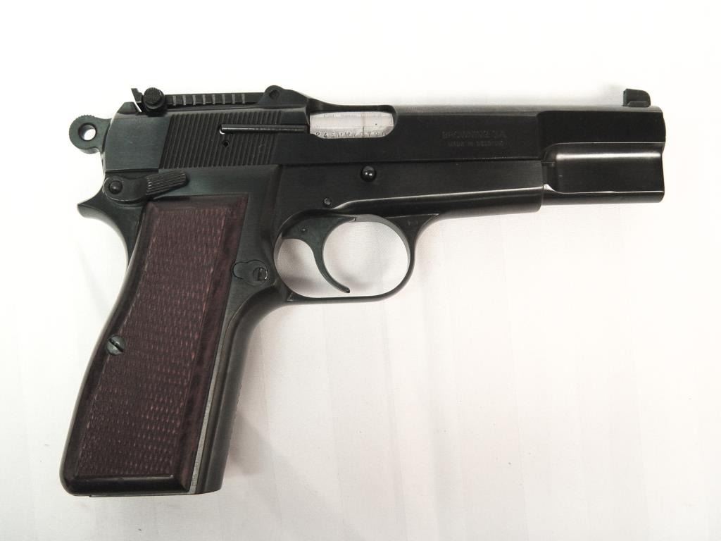 Lot 987 Belgium Browning Hi Power 9mm Semi-Auto pistol with tangent sight, S/N 245NW70789. In excellent to