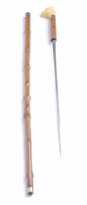 Antique cane with dogs head in simulated ivory with concealed dagger in very good condition. Est.: $200-$400