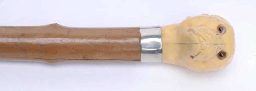 Lot 1014 Antique cane with dogs head in simulated ivory with concealed dagger in very good condition. Est.: