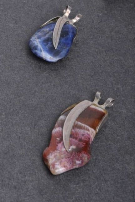 Lot 1015 A unique collection of artistic silver jewelry containing 2 agate pendants and earrings, 2 modern