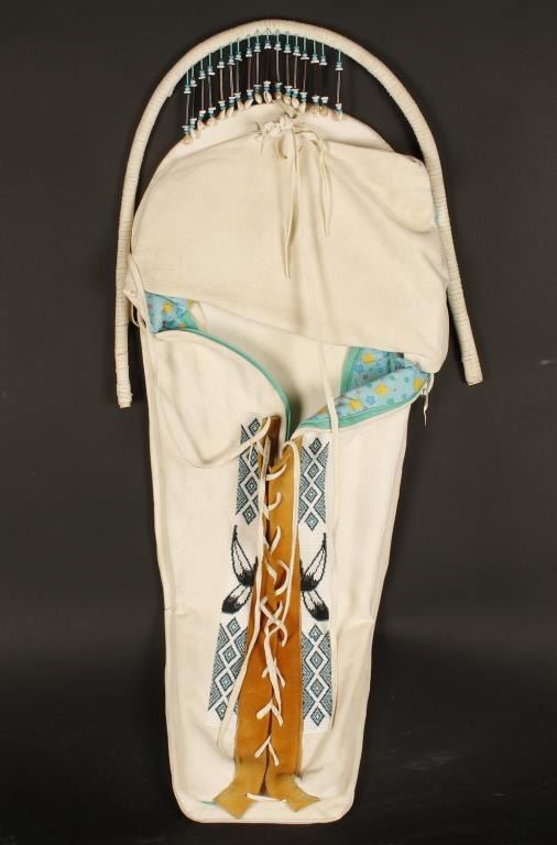 Yakima (Northern Washington State) Cradleboard, Feather and geometric designs. Last 5 years. Est:$250-500