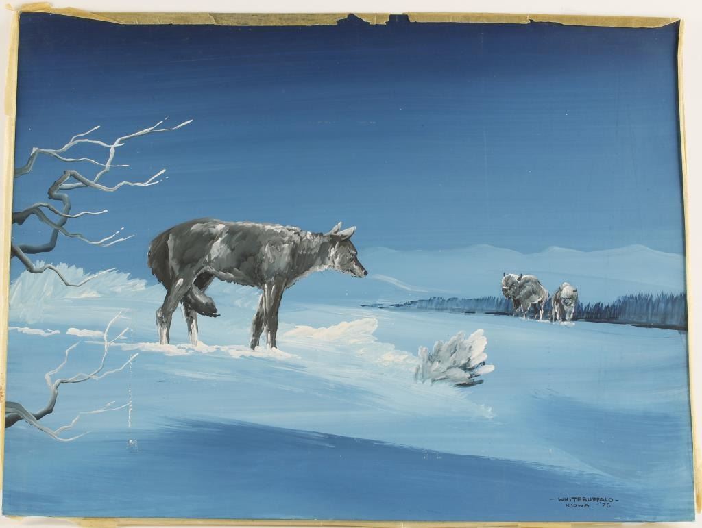 Painting in acrylic on board by Kiowa Artist Bobby Hill aka White Buffalo, 19" x 14". Est:$250-500