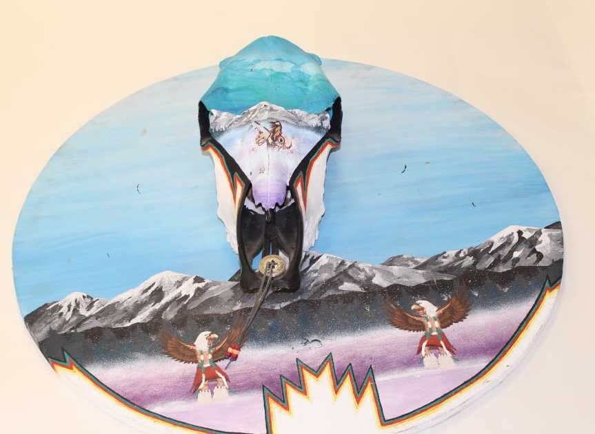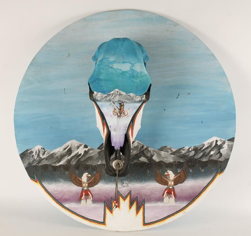 Lot 1026 Bull Skull hand painted in Indian style. Est:$175-350