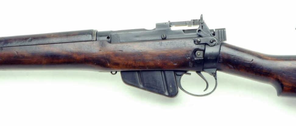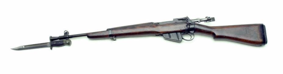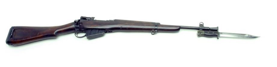 British Enfield No. 5 MKI bolt action carbine, .303 British caliber, 20.5” barrel, S/N U6388, with bayonet, in overall very good condition displaying considerable military finish, very good bore, action, markings and wood that shows carryand use. (C&R). Est.: $350-$700.