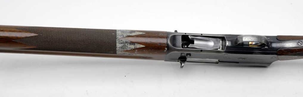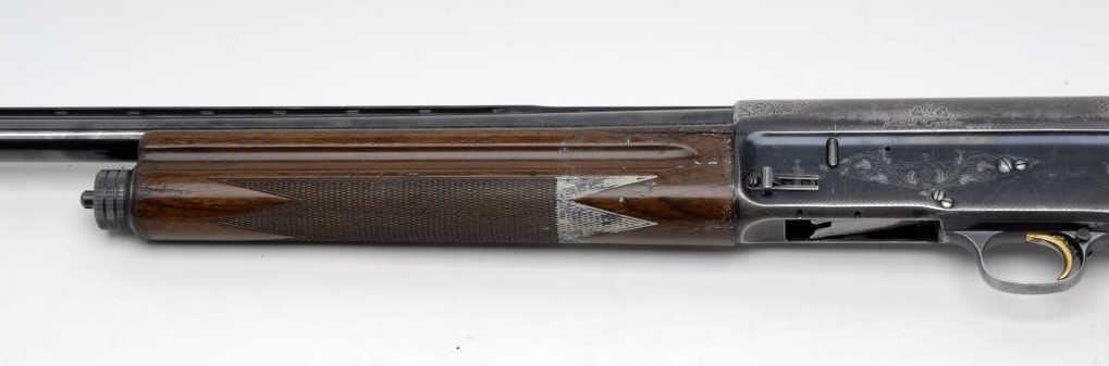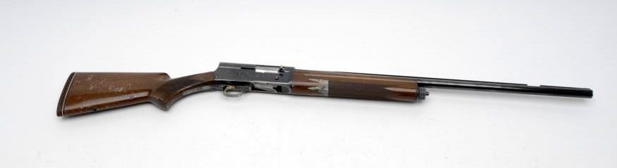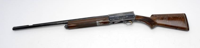 Belgian made Browning Light Twelve Semi-Automatic shotgun, 12GA, 27 ½” barrel, blue finish, checkered wood pistol grip stock, rubber butt pad, vent rib, S/N 72G8730. This rifle remains in overall fair to good condition showingapproximately 60%-80% blue finish remaining. The vent rib is missing a 1 ¼” piece and there is a screw missing on the left side of the frame. The stock shows cracks in the wood along with dings and scratches. The bore is very good and theaction is crisp. Would benefit from some TLC. (C&R) Est.: $400-$800