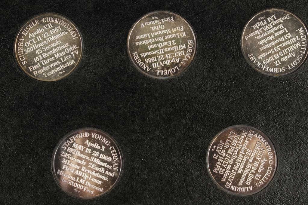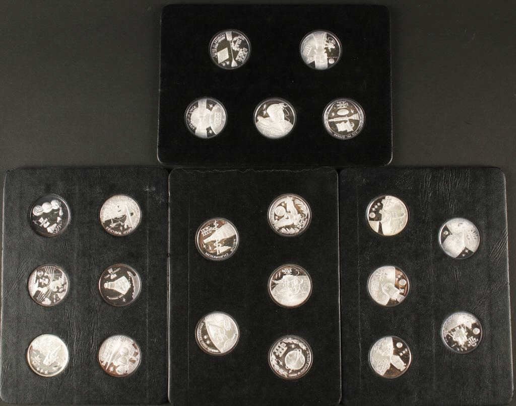 Lot 1233 21 Piece silver .999 pure 1 ounce coins in mint condition showing America’s most famous astronauts