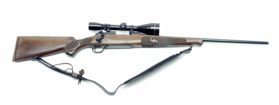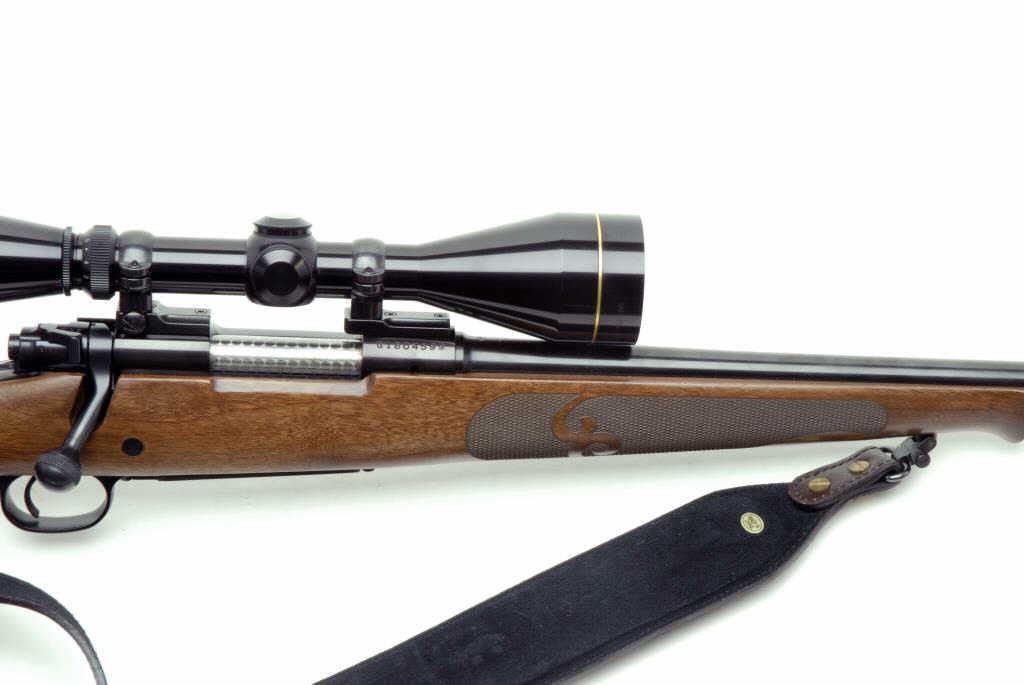 Winchester Model 70 XTR FWT Short Action bolt rifle, .243 Win. caliber, 22” round barrel, S/N G1804599, blued finish, checkered wood stock, leather sling, mounted with a Leupold 3X9…50mm scope showing fine optics. This rifle is in likenew condition. (Modern/PPT). Est.: $400-$800.