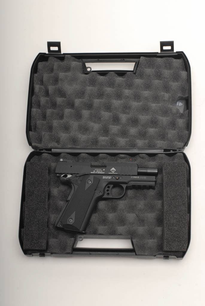 GSG Model 922 CA Semi-auto pistol, .22 L.R., 3 ½” barrel, black finish, checkered grips, S/N A693295. This pistol remains in like new condition showing little handling and no use. Original box included. (CA legal) Est.: $200-$400