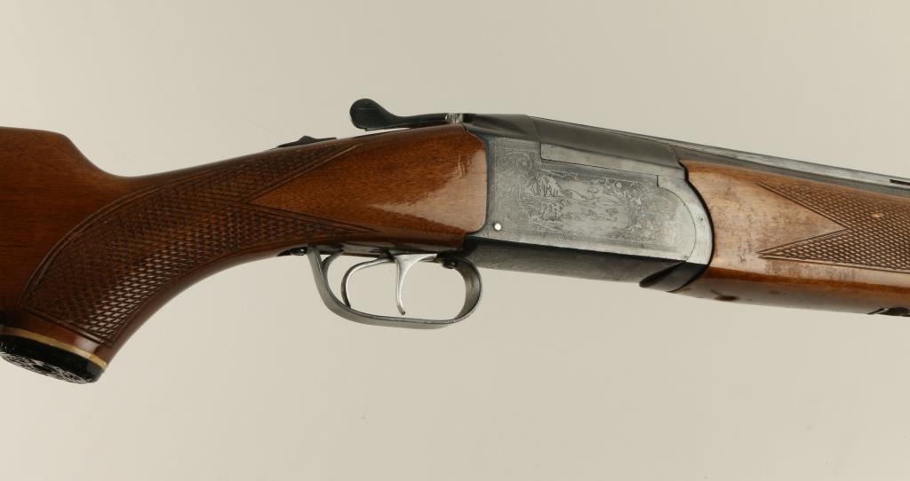 Boito O/U Shotgun, 20GA, 28” barrels, blue finish, engraved frame, ventilated rib, double triggers, checkered pistol grip stock, S/N 30-40029A. This shotgun remains in good condition showing majority of its blue finish remaining along with areas oflight surface rust. The stock remains in good condition with nicks and scratches from handling and use. The action is good and the bores are fair with pitting in the bottom barrel. (Modern). Est.: $200-$400