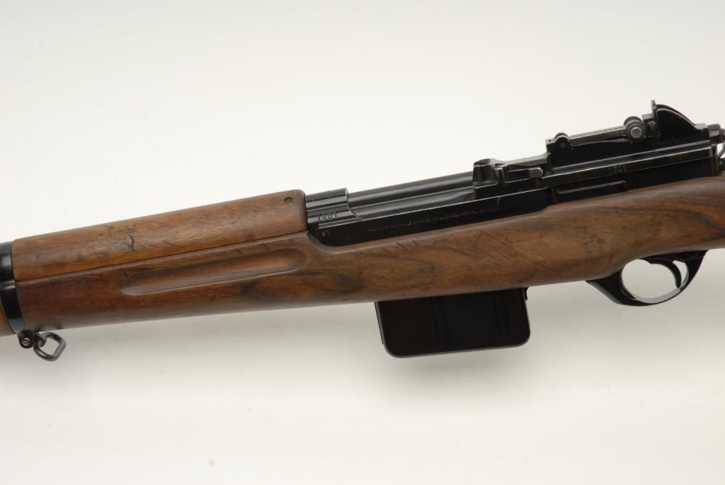 FN Model 49 semi-automatic rifle, .30-06 caliber, 24.5” barrel including muzzle compensator, S/N 1601, in overall like new condition displaying the majority of its black finish, fine bore, crisp action, sharp markings and fine wood stock withcrisp cartouche on underside of stock in front of the magazine well. (Modern ). Est.: $1,200-$2,400.