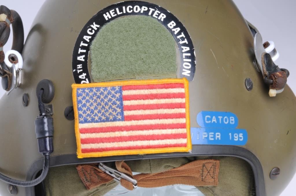24th Attack Helicopter Battalion Helmet with ID sticker; CATOB, Viper-195; complete and in good condition. Est.: $200-$400.