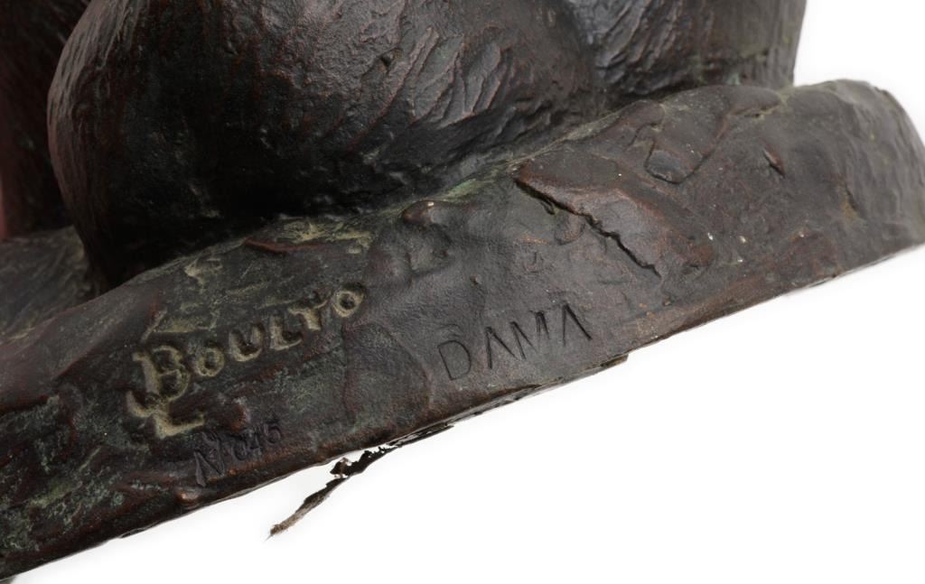 Original bronze entitled “The Alaskan Bear” by noted artist Joseph L. Boulton (1896-1981); fine patina, signed in base and foundry marked “DAMA” and “No. 45”; approximately 9” in height and 7” in diameter; finely accomplished. Est.:$500-$1,000.