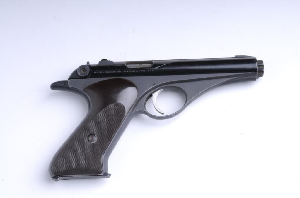 Lot 1643 Whitney Wolverine Model semi-automatic pistol, .22LR caliber, S/N 27141, black finish, checkered b