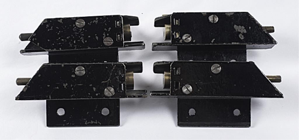 Lot 1678 Victorian Window Box Alarms, Lot of 4 4.5" x 2.25" cast iron boxes with spring loaded brass hammers
