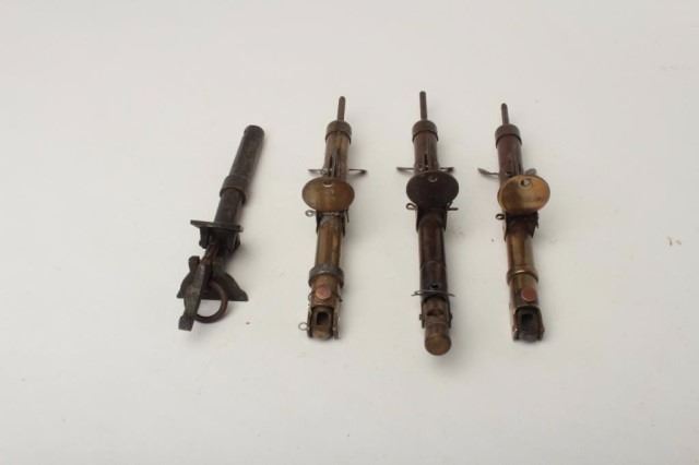 Lot 1689 Tubular Brass Alarm Devices, Lot of 4 Ranging from 7.25" to 10" in length, spring loaded with trig