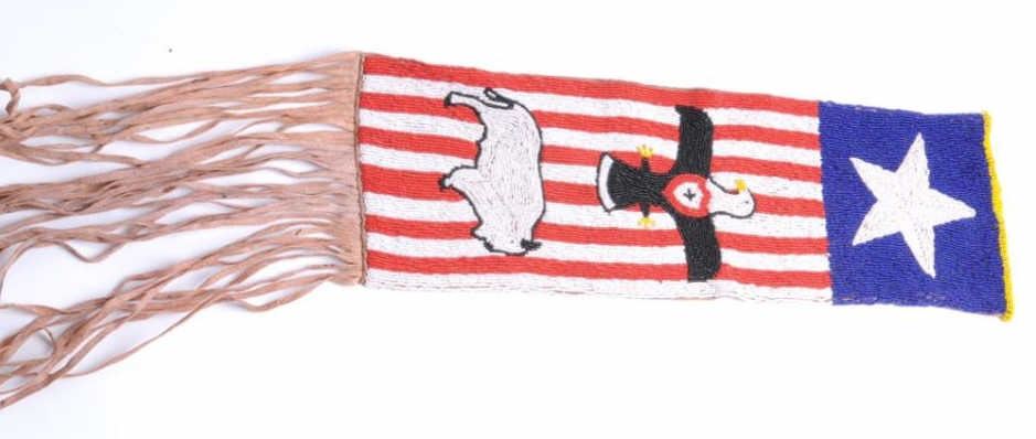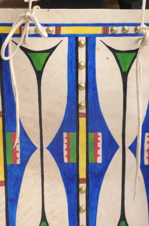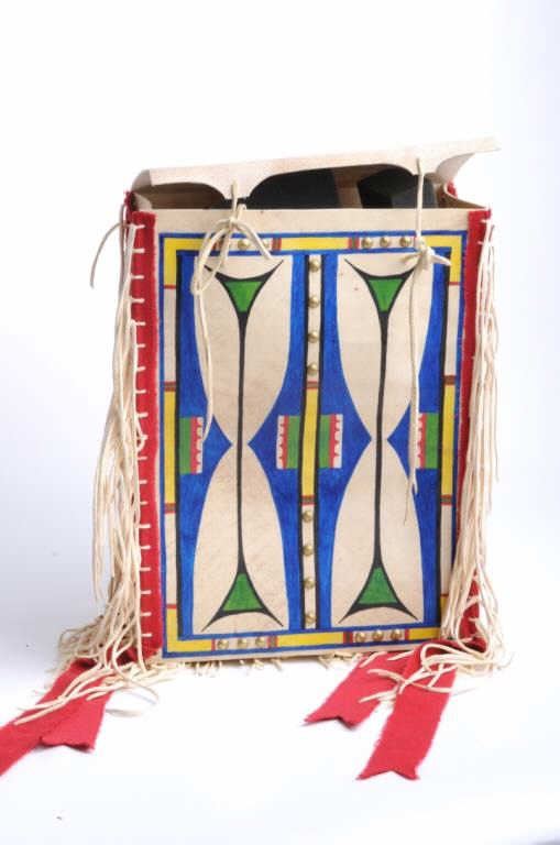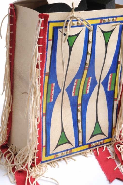 Lot 1700 Modern made Indian beaded pipe bag with fringe and colorfully painted modern made Indian hide poss