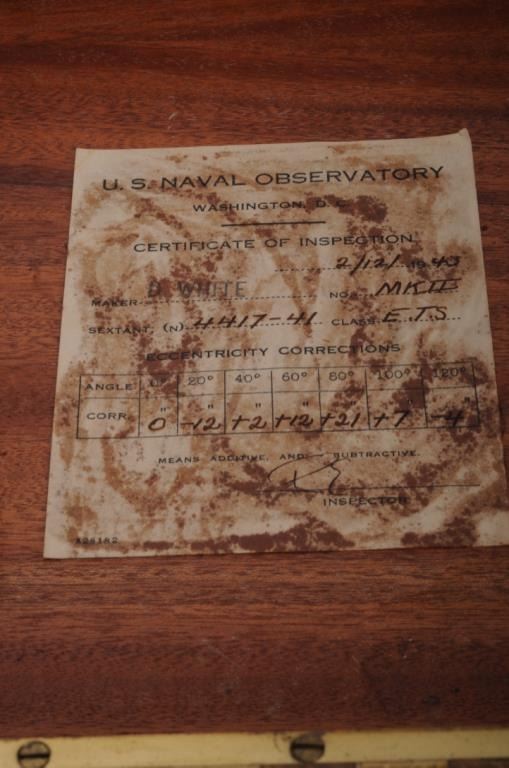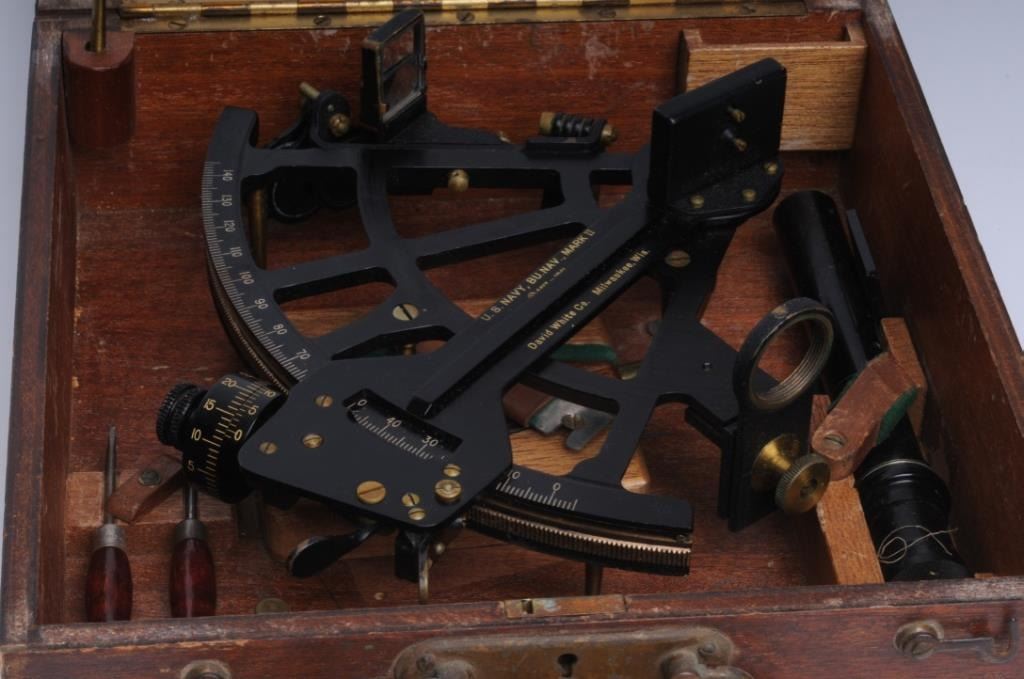 U.S. Naval Mark II Sexton in wood carry case, in overall very good to fine condition; manufactured by David White Co., Milwaukee, Wis.; dated 1941; some chips to venire of lid. Est.: $350-$700.