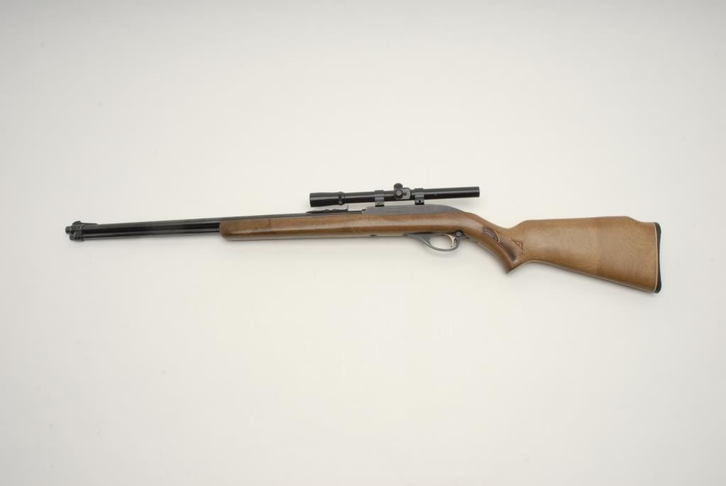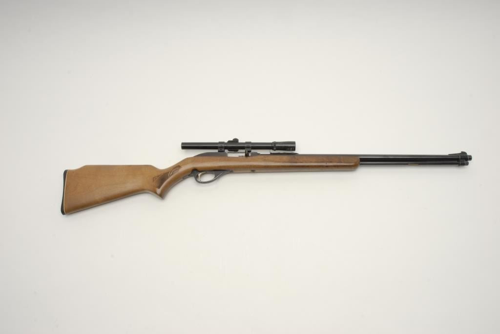 Marlin Model 6660 Semi-auto rifle with J.C. Penny agent markings, S/N 27226312 with unmarked scope and in very good used condition. From another age when guns were not held responsible for people’s actions. Est.: $200-$400