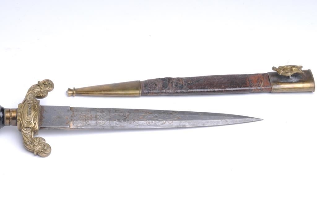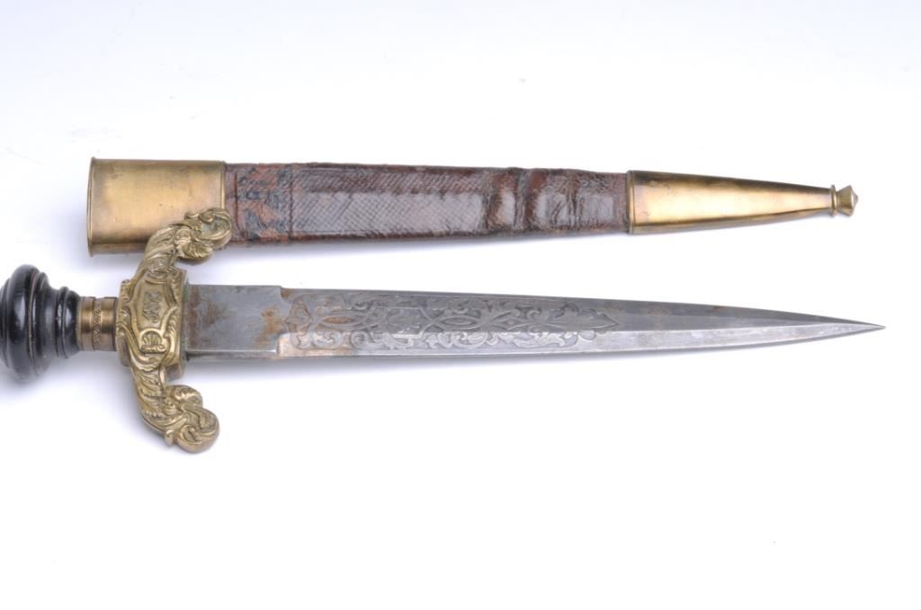 Lot 1710 Plug bayonet with fancy mounts and etching. Marked “Toledo”. Est.: $200-$400
