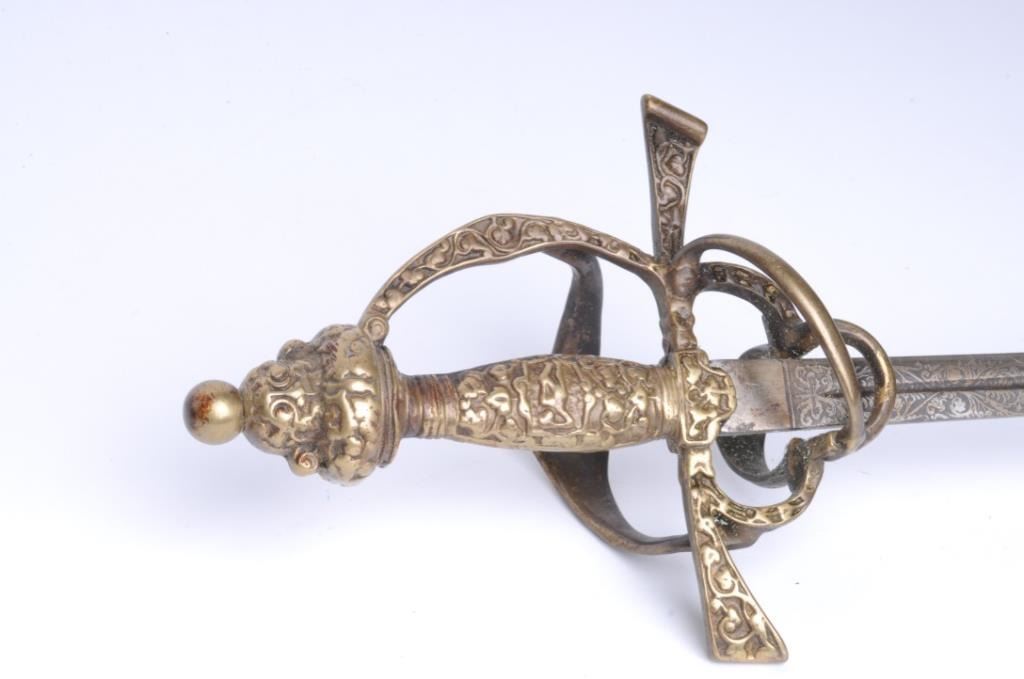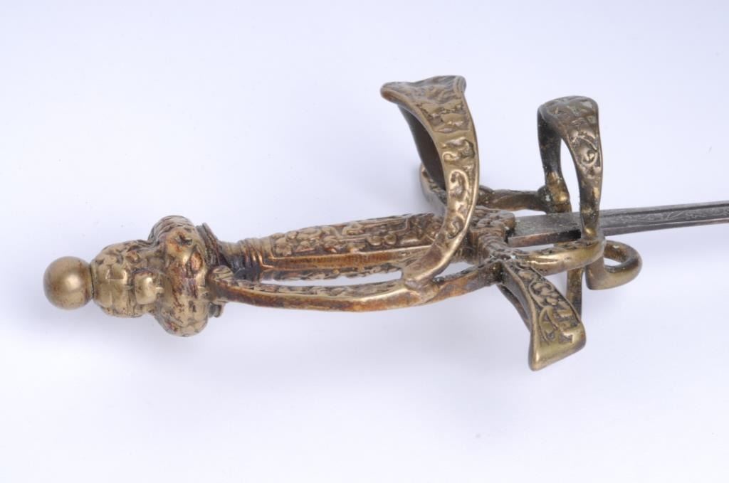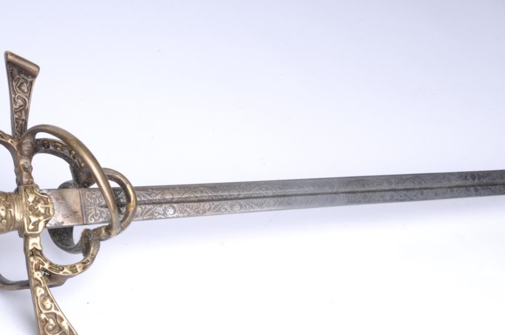 Lot 1711 17th century style rapier from Victorian era with cast ornate brass grip and etched blade. In good