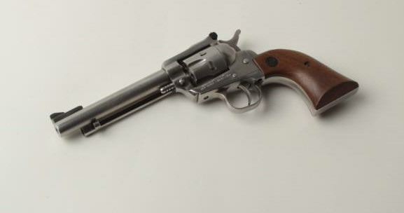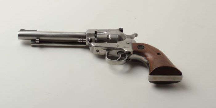 Lot 1727 Ruger New Model Single Six .22 caliber S.A. revolver in stainless steel with a 5 ½” barrel, S/N 63