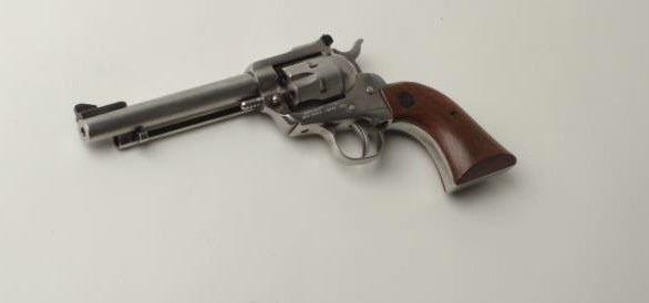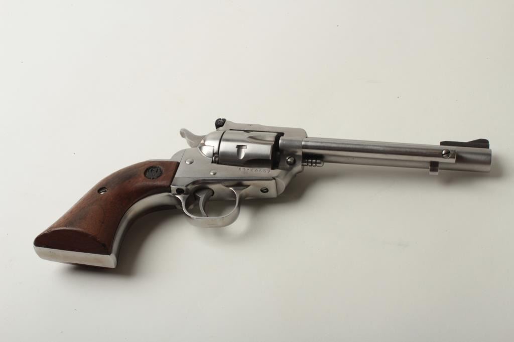 Ruger New Model Single Six .22 caliber S.A. revolver in stainless steel with a 5 ½” barrel, S/N 63-58667. One cylinder and .22 L.R. only. In very good plus used condition. (Modern/PPT) Est.: $250-$500