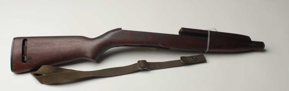 Lot 1772 M2 carbine wood stock and hand guard plus original “C” tipped sling and oiler in overall good cond