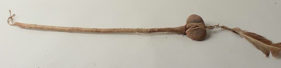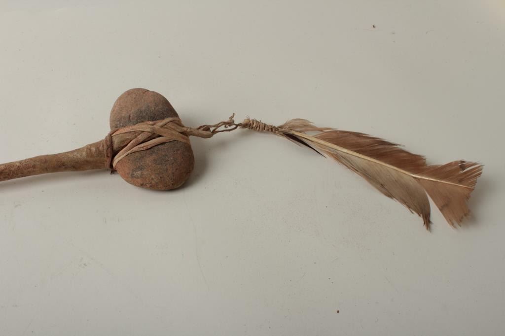 Reproduction Indian War club with turkey feather. Est.: $75-$150.