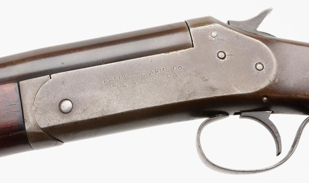 Lot 1807 Palmetto Arms Co. top break single shot shotgun, 16 gauge, 29-3/4” barrel, brown patina, wood stoc