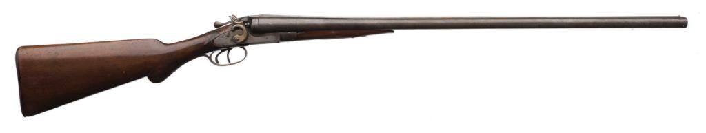 Lot 1950c ** Side-by-side exposed hammers shotgun marked “Eclipse Gun Co.”12 gauge, repaired wood butt stock