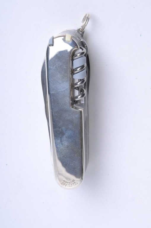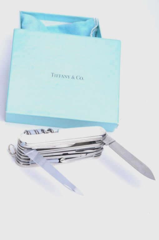 Ultra-deluxe Swiss Army knife signed “Tiffany” and marked sterling and 18K. Mint with blue box and bag. A gift to board members by major defense contractor in early 90s. Est.: $750-$1500
