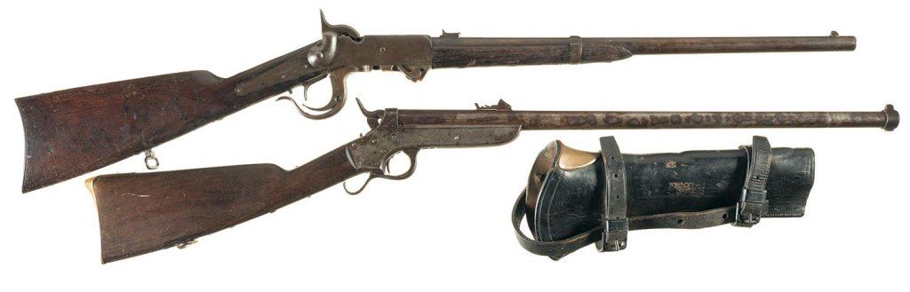 Two Civil War Carbines -A) Burnside 5th Model Percussion Carbine with a Rock Island Arsenal Model 1887 Carbine Boot