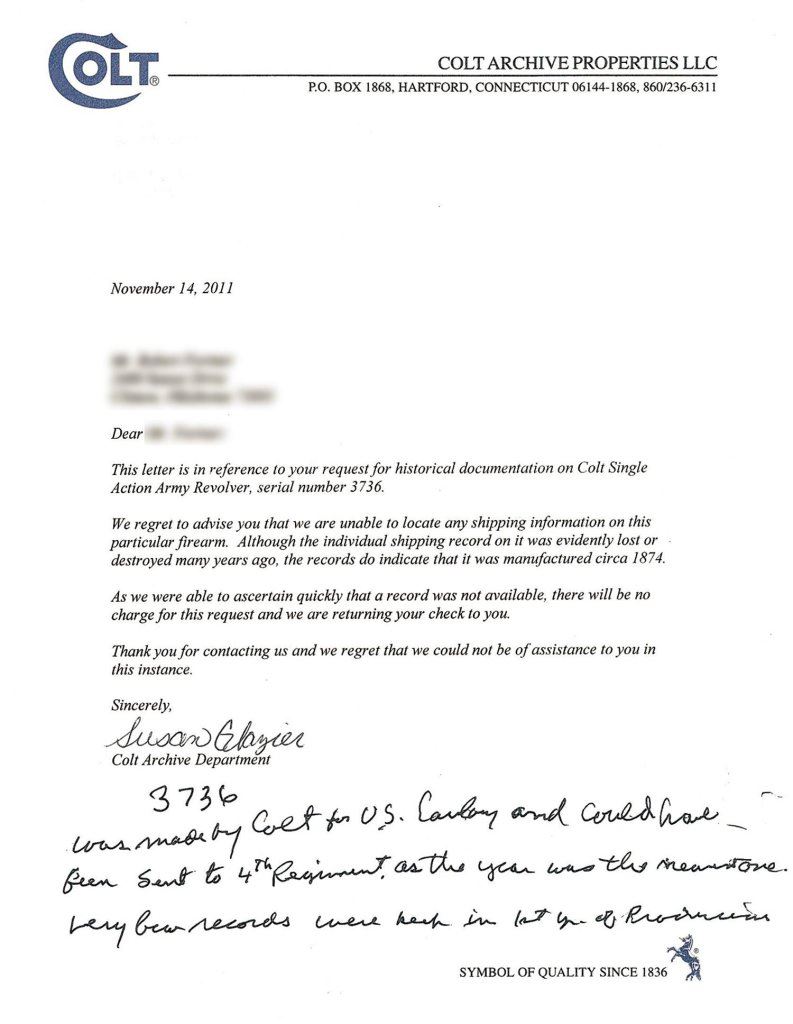 Ainsworth Inspected Low Serial Number U.S. Colt Single Action Army Cavalry Revolver