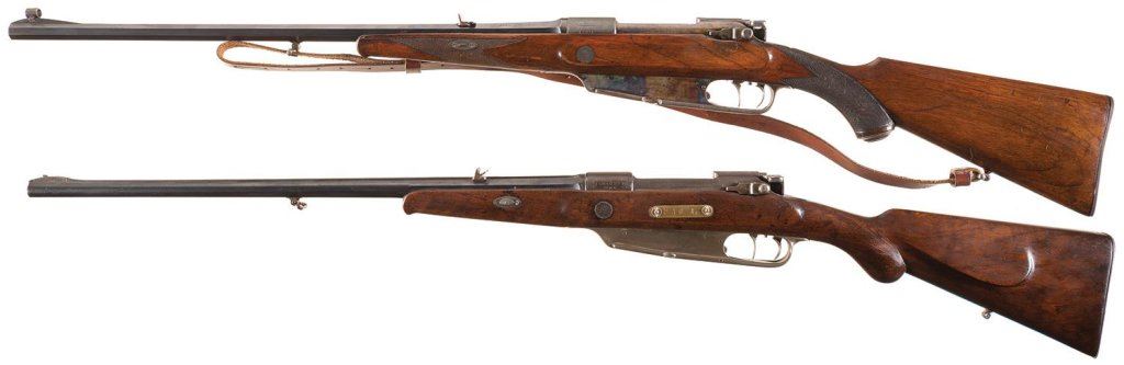 Two Mauser Gewehr Model 1888 Action Bolt Action Sporting Rifles -A) V. Chr. Schilling Rifle