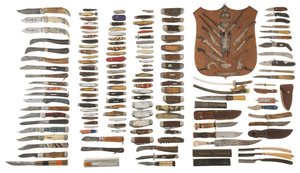 Lot 434 Large Grouping of Pocket Knives and Other Bladed Items