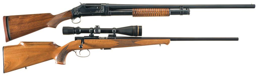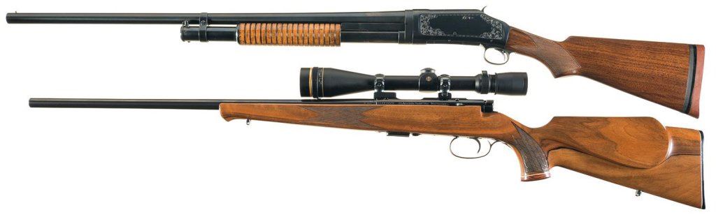 Two Sporting Longarms -A) Engraved Pre-World War II Winchester Model 97 Slide Action 16 Gauge Takedown Shotgun