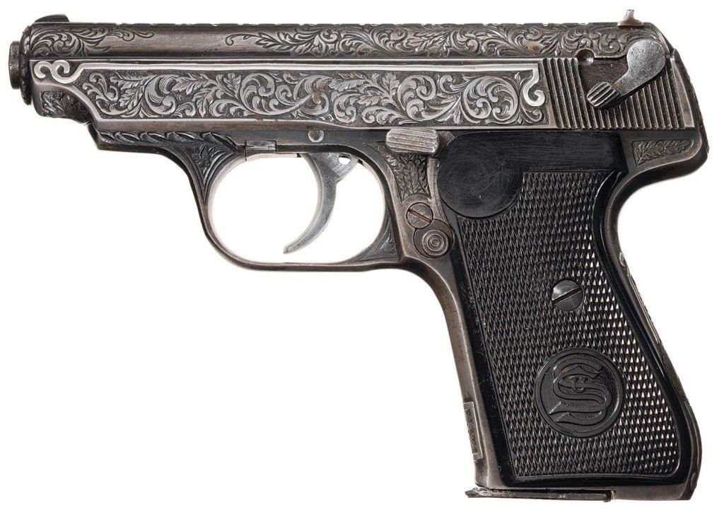 Lot 511 Deeply Engraved and Silver Inlaid Sauer 38H Semi-Automatic Pistol