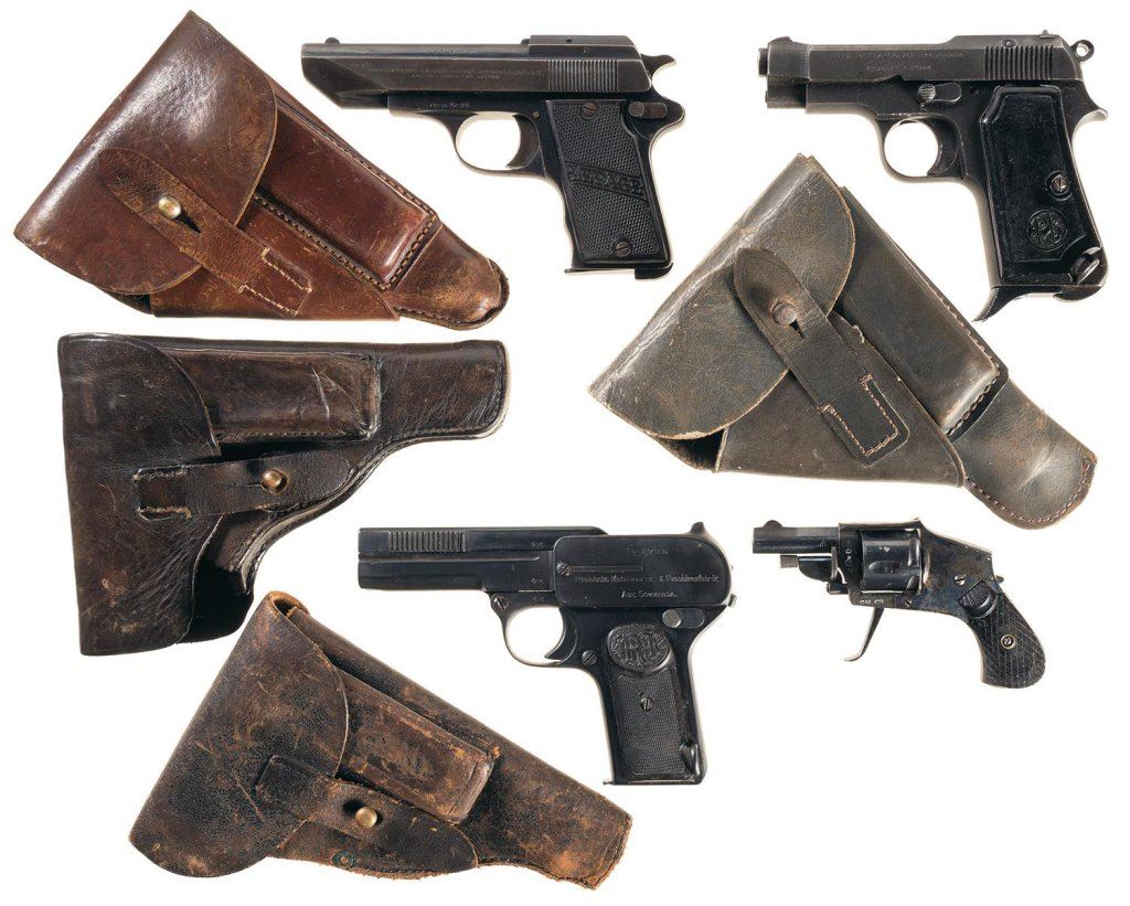 Four European Handguns -A) Belgian LePage Semi-Automatic Pistol with Two Holsters
