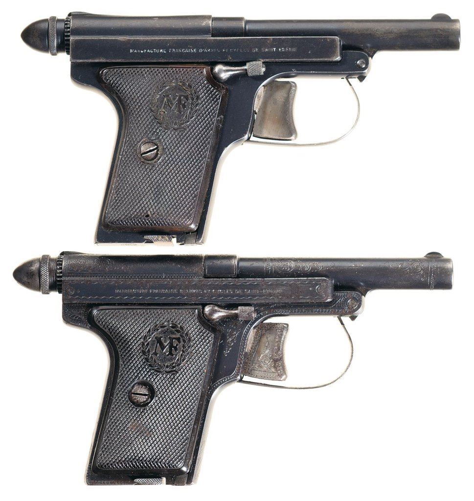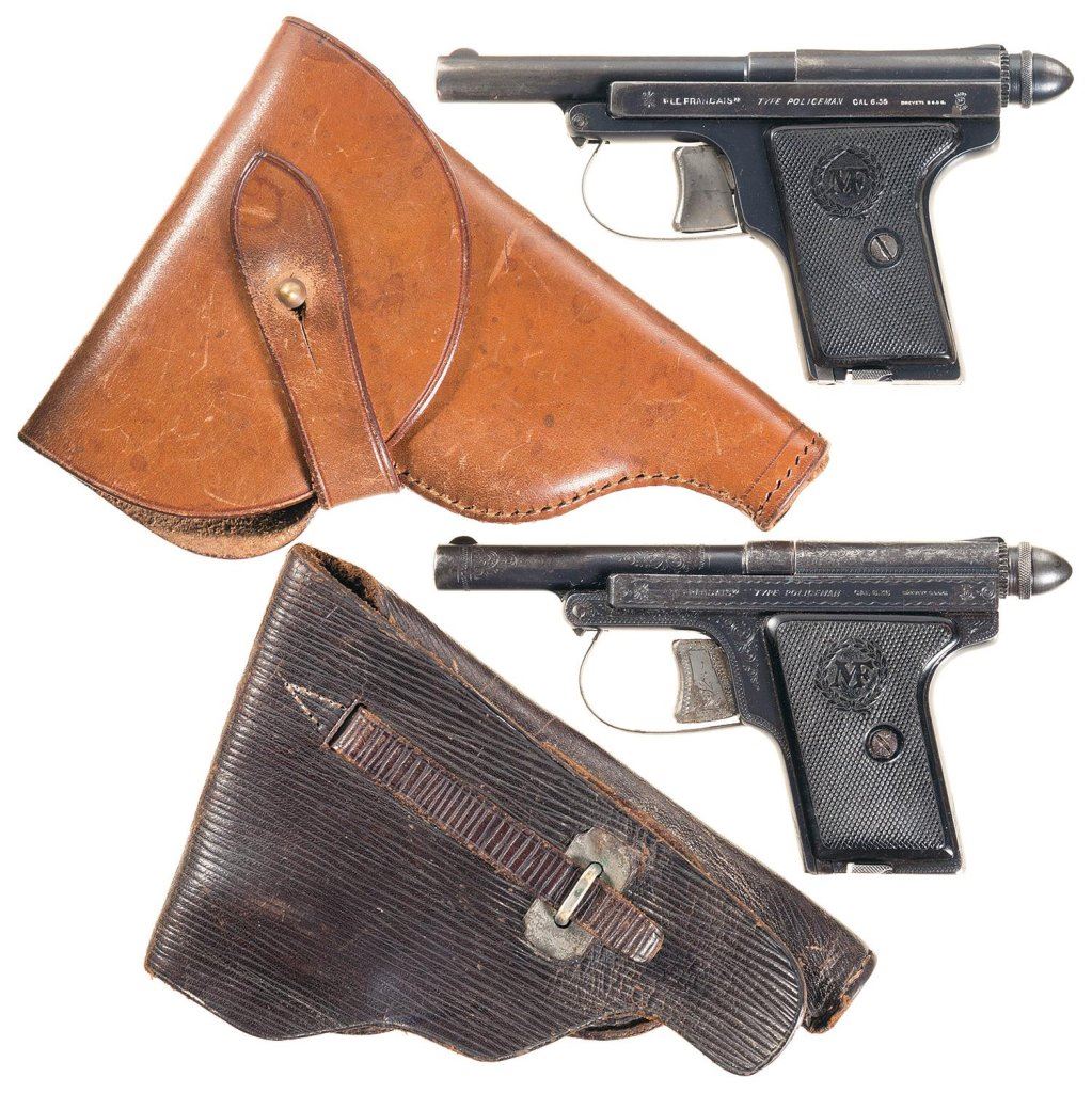 Two French Semi-Automatic Pistols with Holsters -A) Le Francais Policeman Model Pistol