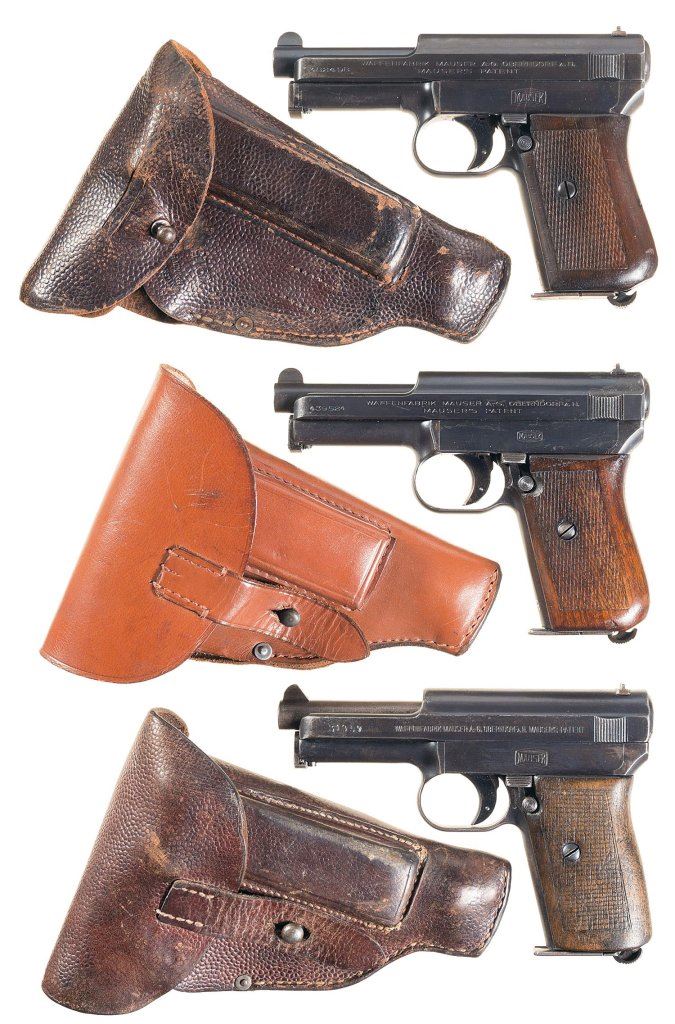 Three Mauser Semi-Automatic Pistols with Holsters -A) Mauser Model 1914 Pistol with Police Marking